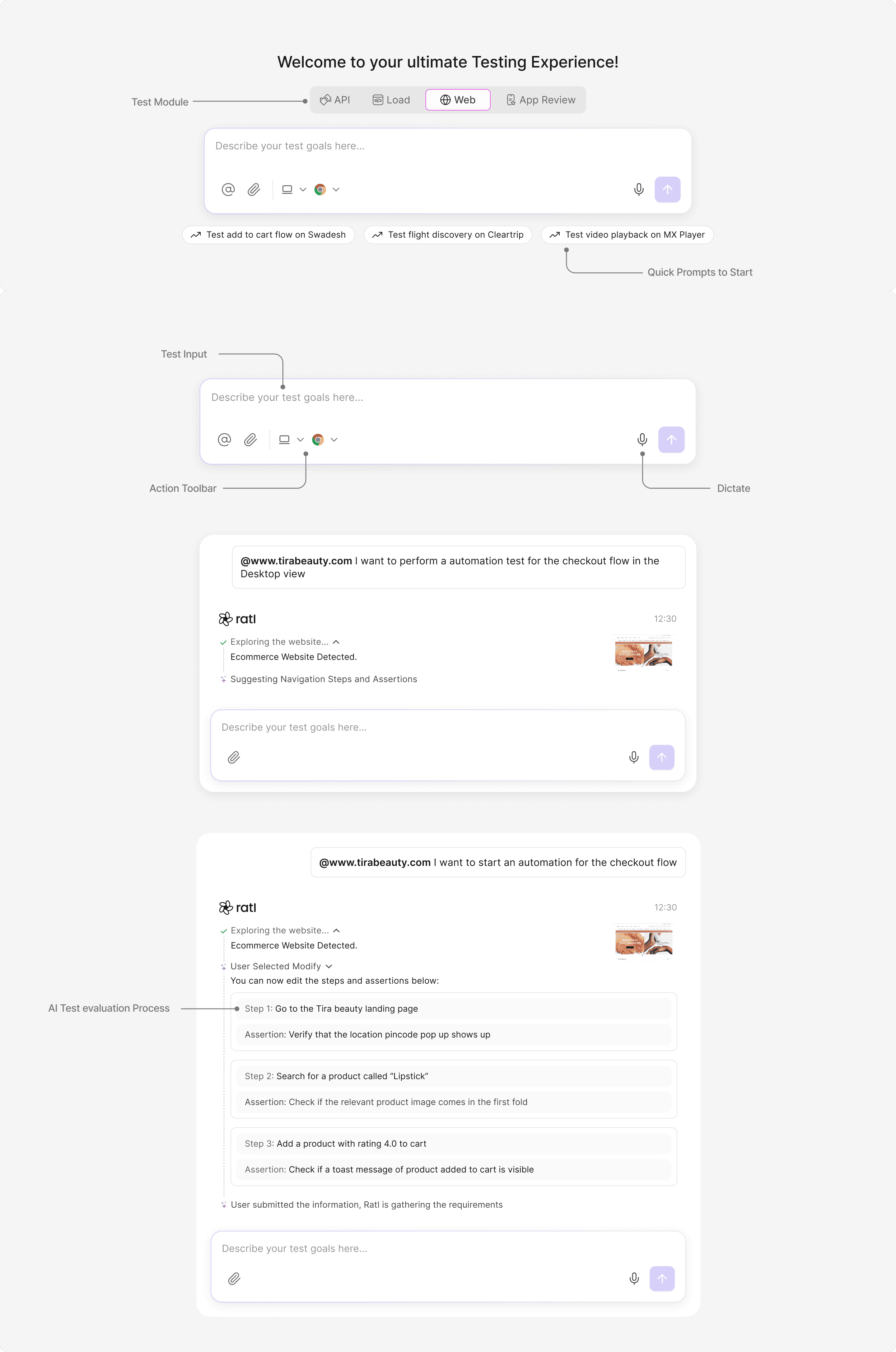 I proposed a centralised dashboard that consolidates all testing functionalities into one cohesive space, reducing complexity and enabling users to control their entire workflow effortlessly from one place