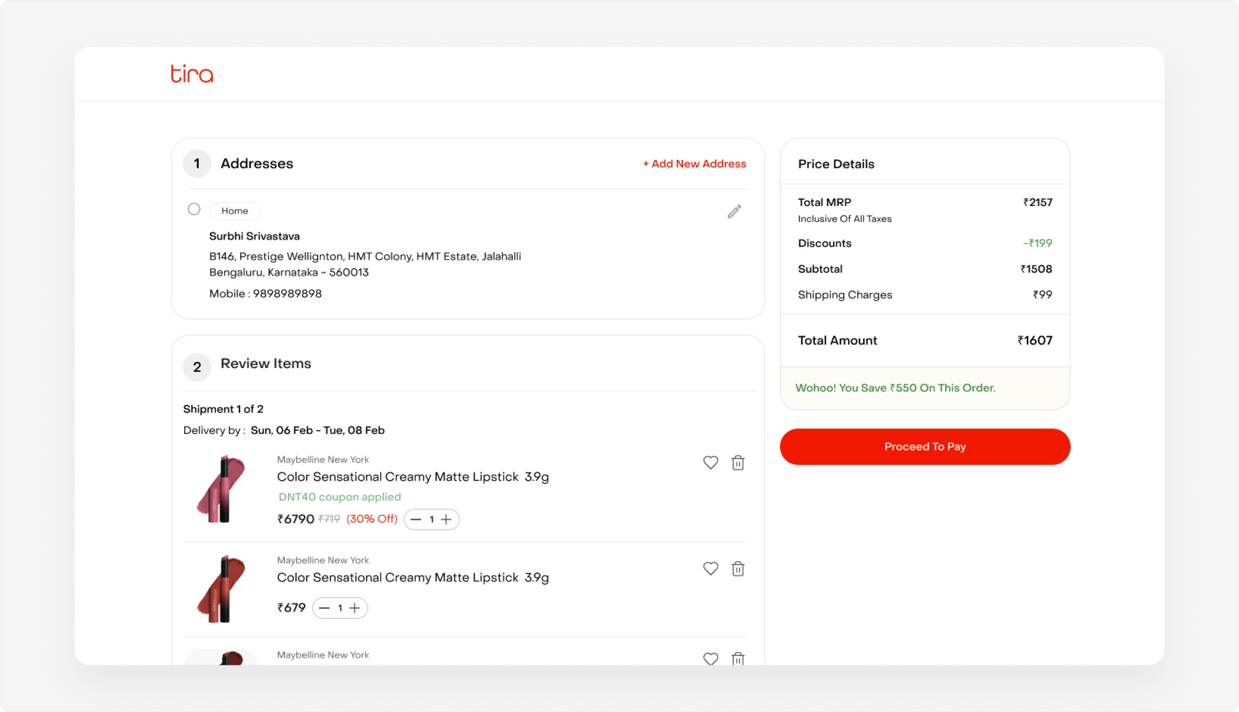 Designed Tira Beauty’s Landing page and checkout flow to make buying beauty products seamless, fast, and emotionally delightful
